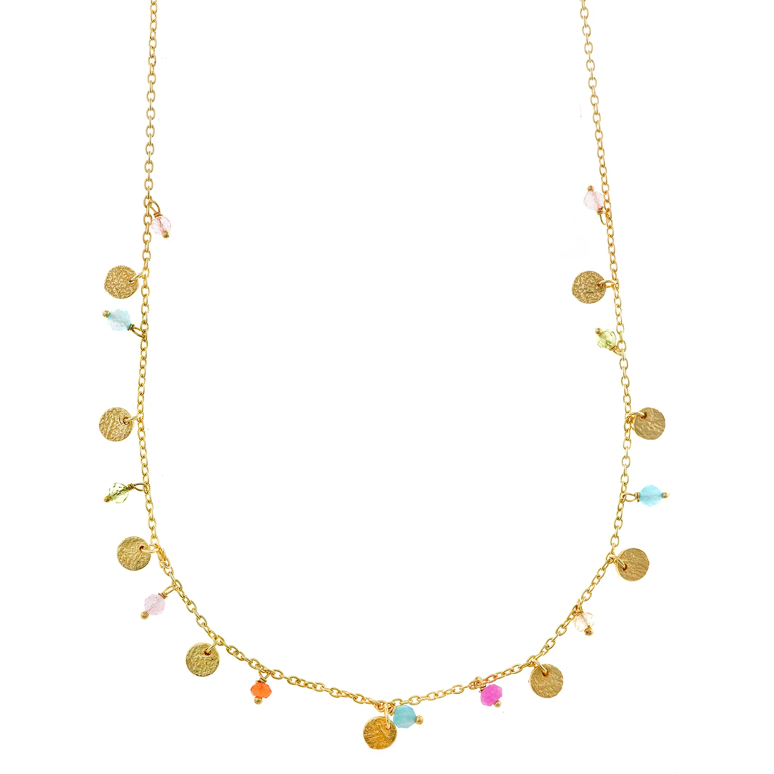 Collar Salvatore Plata 163C0140 en plata con chapado dorado y bolitas de colores.