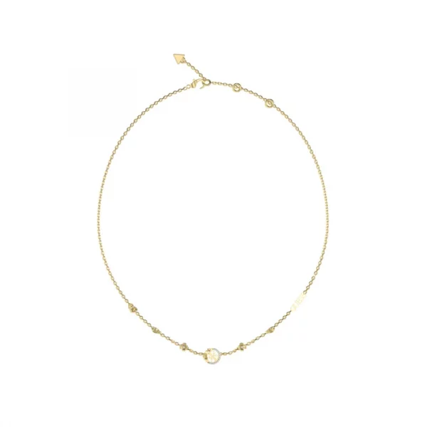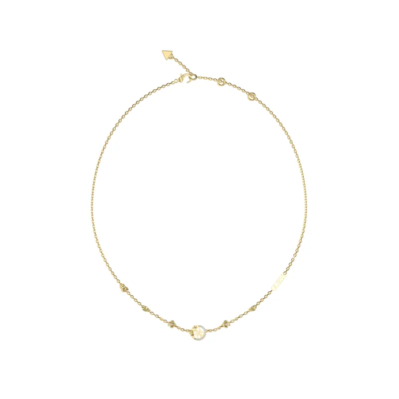 Collar Guess Mujer Acero 4Love Dorado JUBN05038JWYGT-U: Gargantilla fabricada en acero IP dorado pulido con logotipo Guess en uno de sus lados. Cierre de tipo mosquetón con anillas para regular su largo.