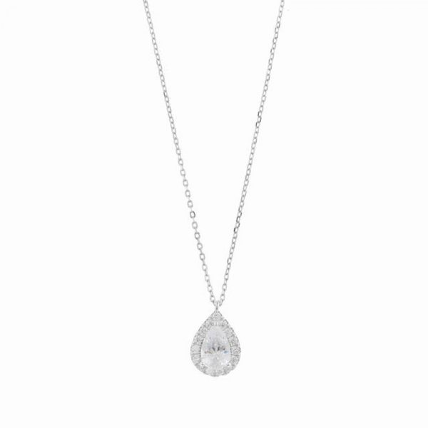 Colgante de plata de ley rodiada con circonita blanca en forma de pera envuelta en circonitas engastadas.