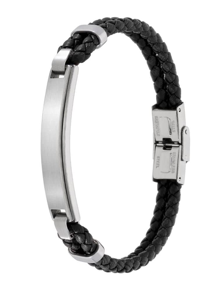 Pulsera de Acero y Cuero Trenzado Negro para Hombre | Elegancia Versátil y Robusta.