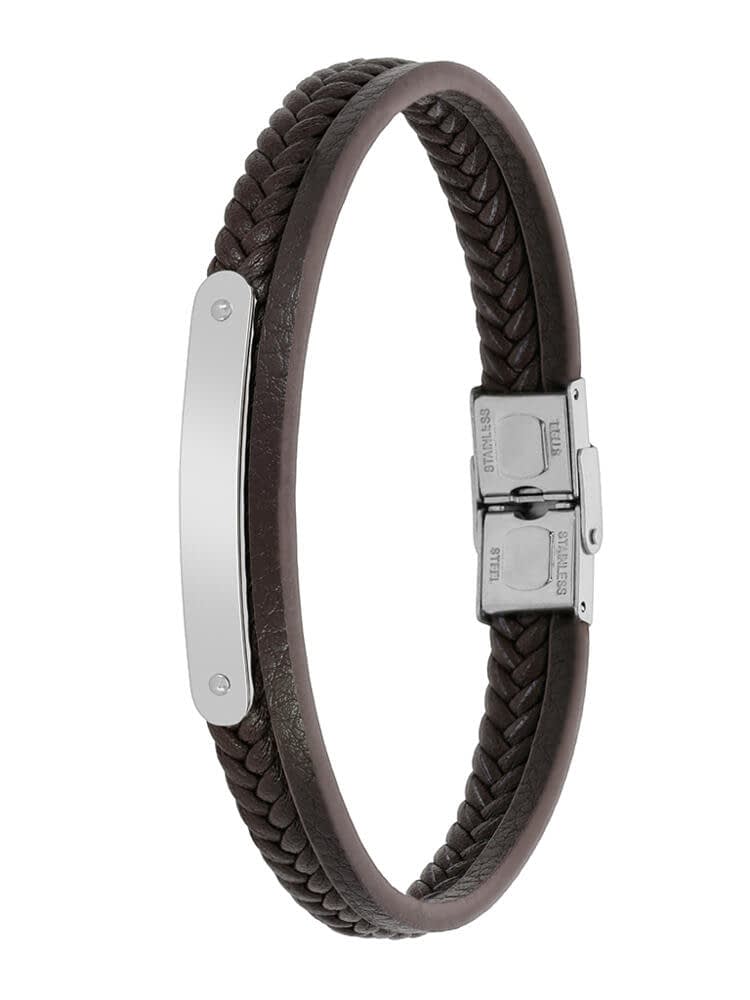 Pulsera Marea de Caballero en Cuero Trenzado Marrón y Acero Inoxidable