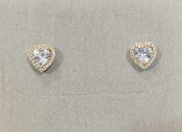 PENDIENTES DE ORO AMARILLO DE 18 KILATES CON ZIRCONITA CENTRAL DE CORAZON Y ZIRCONITAS AL REDEDOR.