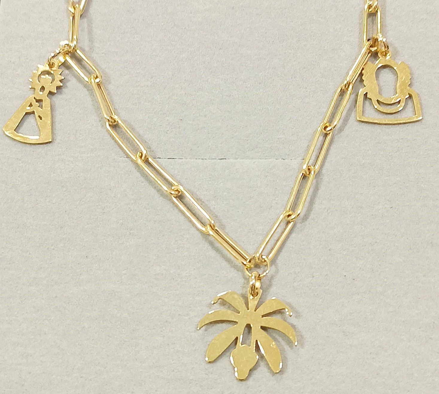 PULSERA DE ORO AMARILLO DE 18 KILATES CON MOTIVOS  DE LA VIRGEN DE LA ASUNCION, DAMA DE ELCHE Y MANGRANA SANTA.
