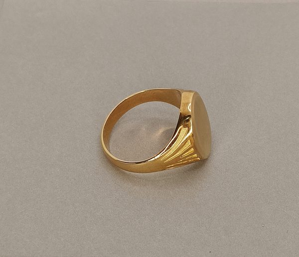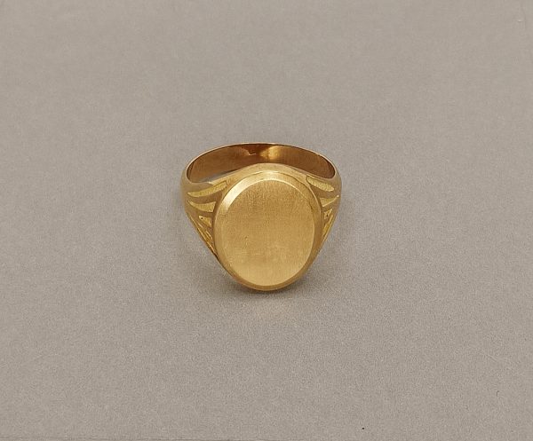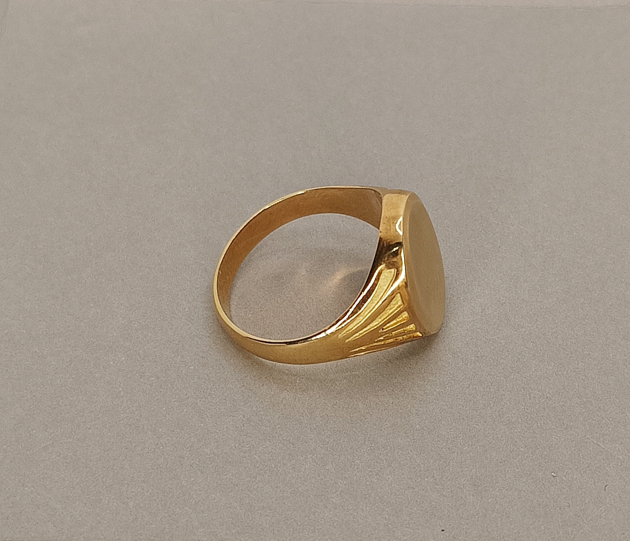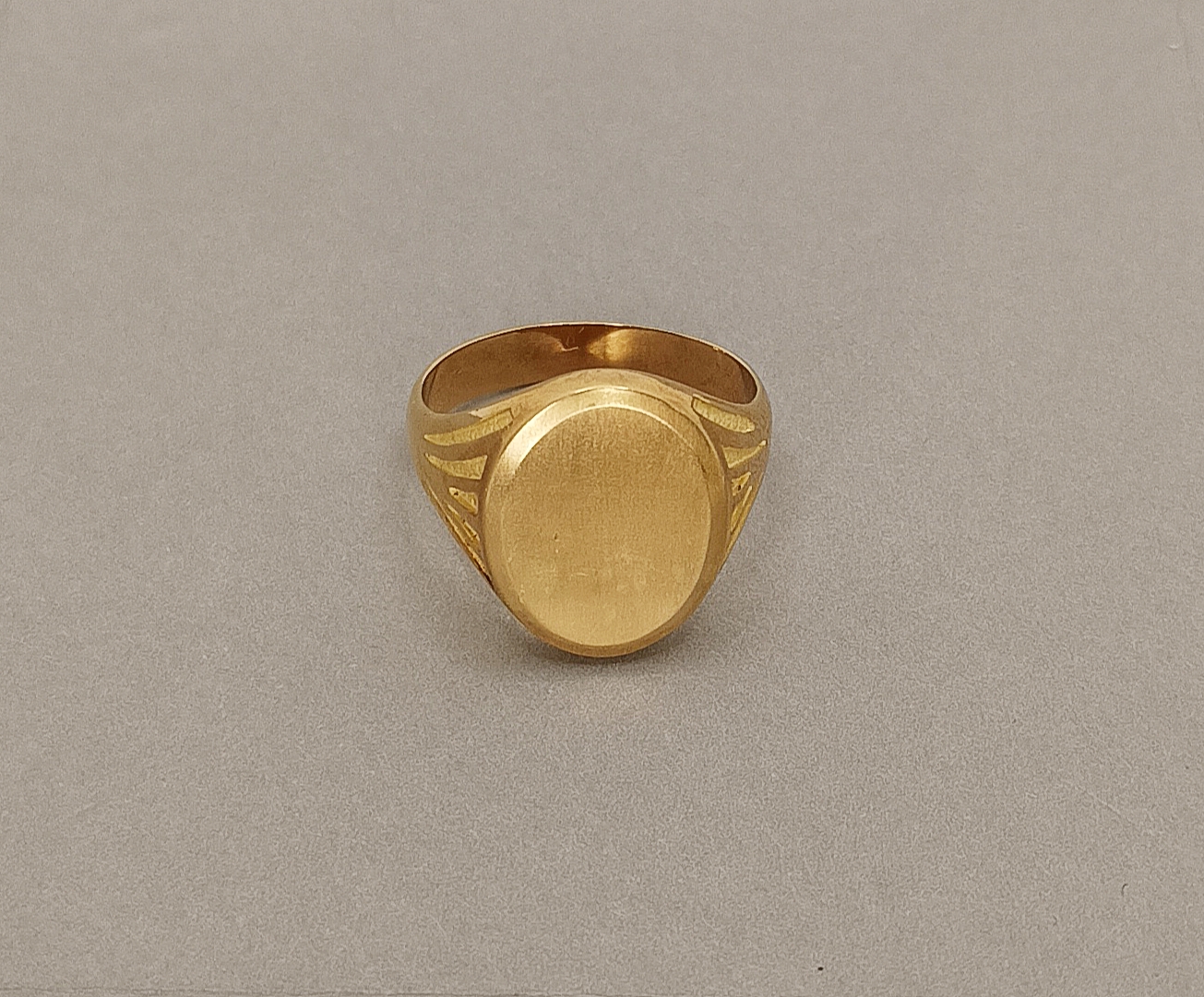 SELLO DE CABALLERO DE ORO AMARILLO DE 18 KILATES CON MOTIVOS LATERALES.